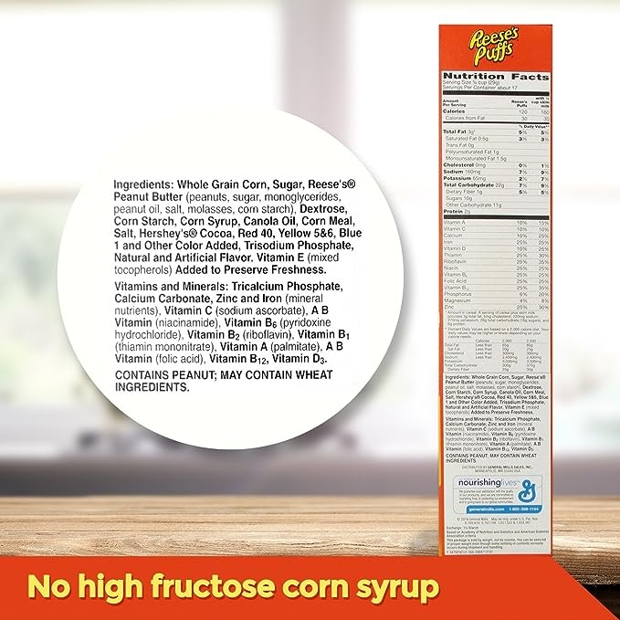 Bắt đầu ngày mới với hương vị bơ đậu phộng sô cô la của Ngũ cốc bơ đậu phộng sô cô la General Mills REESE'S PUFFS. Những chiếc bánh ngô giòn, ngọt ngào này được làm bằng bơ đậu phộng REESE'S thực sự.